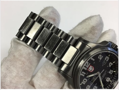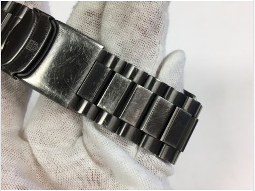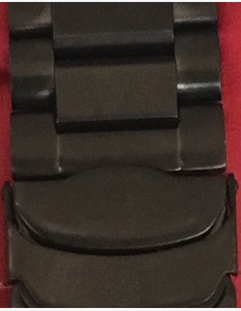 Могу предположить, что браслет повторно кустарно перекрашен (присмотритесь к звеньям идущим от застежки - они в местах стыка боковых с центральным звеном неравномерно окрашены).
