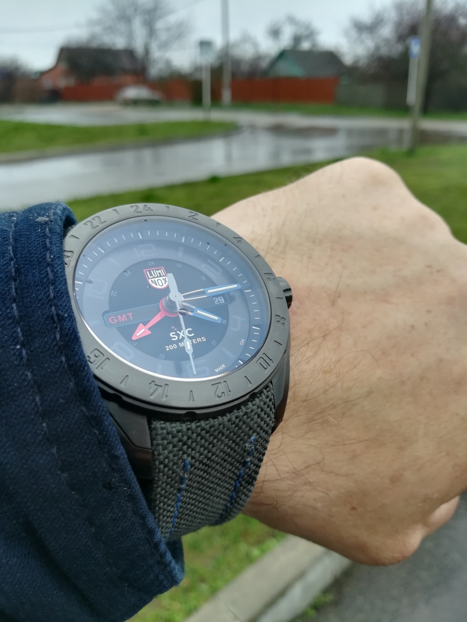 Luminox секундная стрелка, которая обычно не попадает на риски, здесь тикает очень ровно, причем на всех трех моделях которые были в моих руках, секундная стрелка радовала точностью попадания по рискам циферблата. Часы покупались из расчета эксплуатации на каждый день, работа, спорт. За время ношения нареканий ноль, точность хода на уровне +4/5 сек в месяц, что касается внешнего вида - то часы как новые, хотя и были моменты когда я их серьезно прикладывал. На руке лежат очень удобно, носить одно удовольствие. Тритиевая подсветка как всегда радует, голубой цвет трития светит шикарно, мой любимый цвет, намного интереснее чем зеленый.