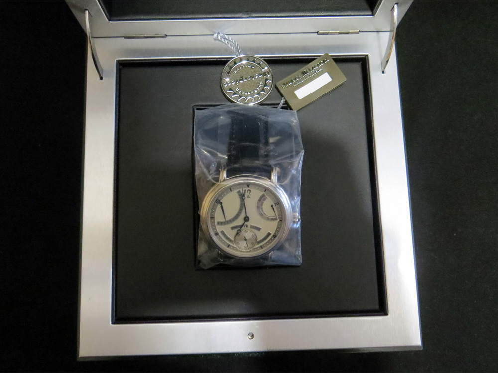 Функции: ретроград дата, ретроград уровень заводки, минуты/часы в центре, отдельный показатель секунд