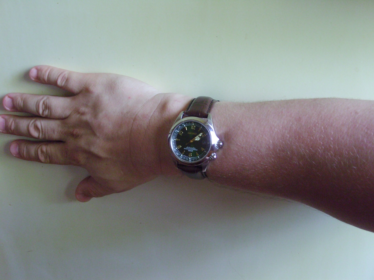 Итак, предмет разговора. Много слов сказано, букв написано, фото снято и размещено, добавлю свою толику малую. Как многие уже писали, вживую часы намного интереснее, чем на фото, этакий толстенький оладышек, но какой же маленький! Или у меня уже "бибика дуду!" совсем, или срочно надо что-то Invicta-подобное, цитрус от Casio оказался учебным, а теперь и зеленушка