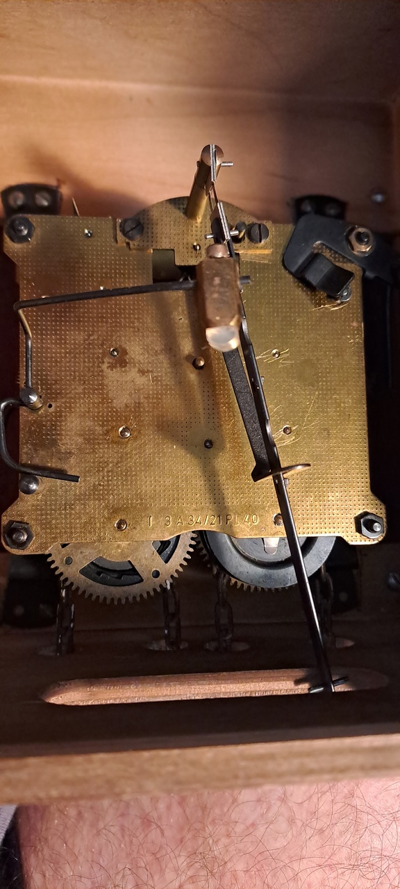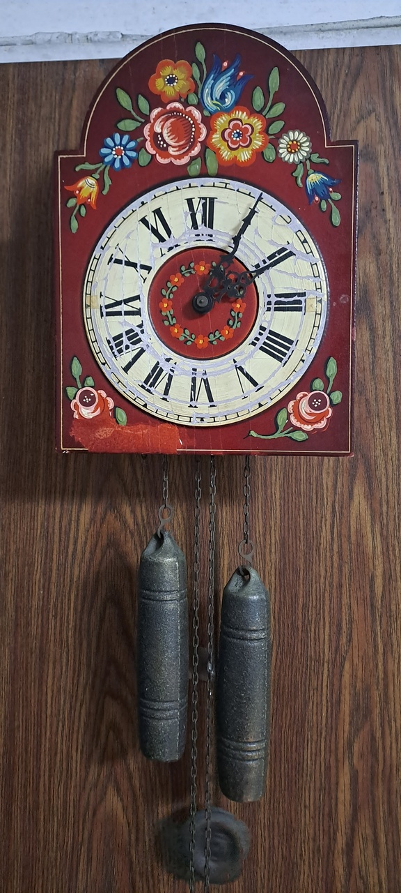 Подскажите, пожалуйста, что за часы, кто производил и когда. Гири, линза маятника чуганные, цепочки, шток маятника латунные. Есть пластиковые колеса.