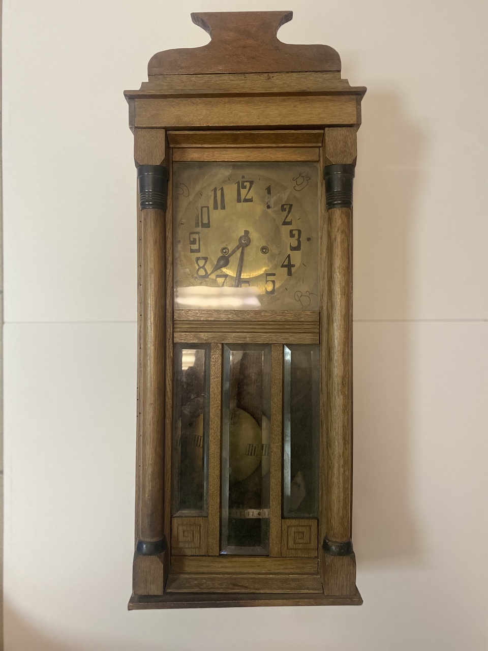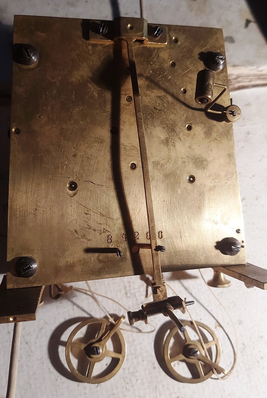 Поводок маятника похож на Kienzle, но это не Kienzle. Сделайте фото гонга часов, а также механизма целиком, чтобы хорошо было видно заднюю платину. Обозначения еще какие-то кроме номера на нем есть?