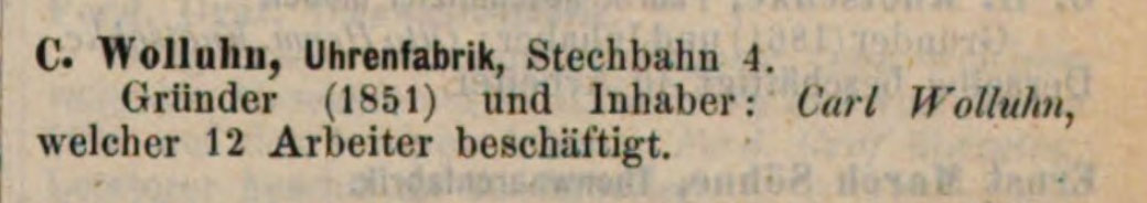 Для меня К. Воллун был очень талантливым часовщиком, который по случаю Uhrmacher и Uhrenhandlung также был Uhrenfabrik (и inhaber). Но это не могло быть большим предприятием. Укажите предоставленные вами адреса в Берлине.