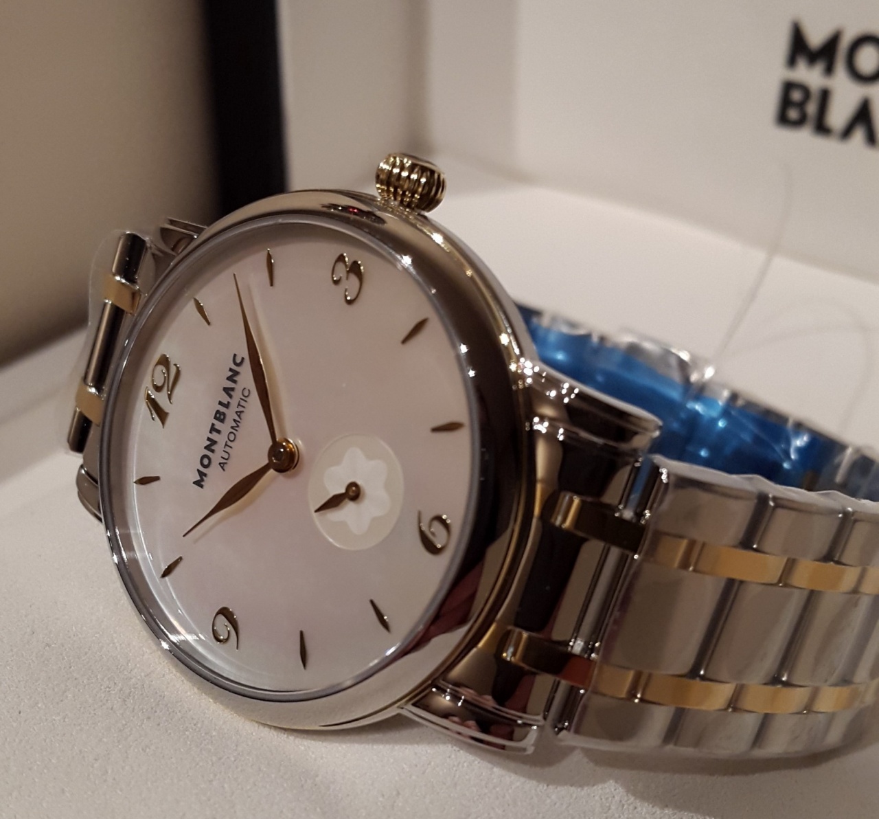 Утончённые и элегантные женские часы Монблан с изысканным тонким корпусом диаметром 34 мм,