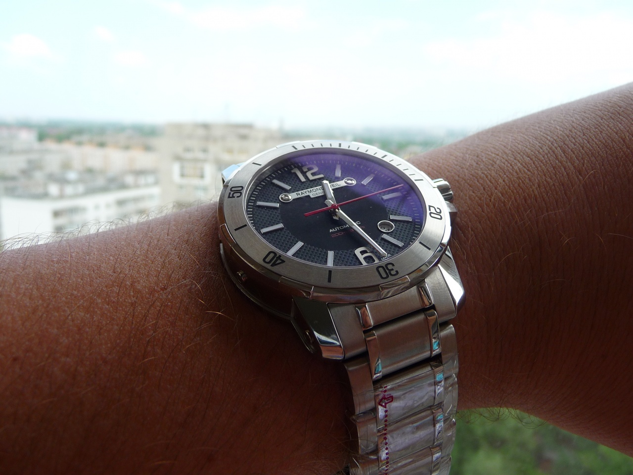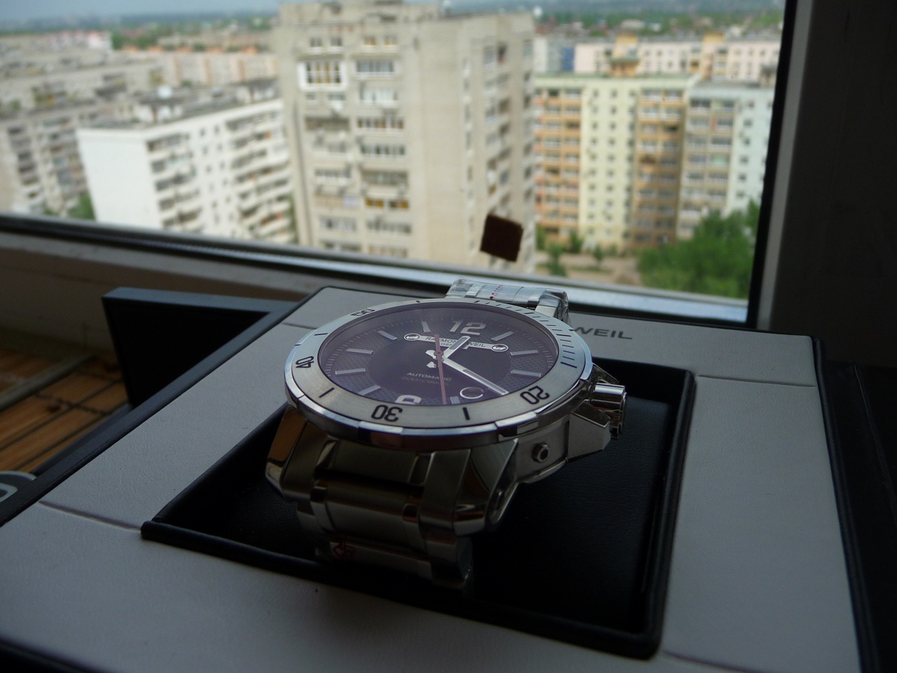 История приобретения такова : жили-были на руке "докопроэкономические" Citizen Titanium c открытым балансом. Прошли институт, походы, сауны с последующим купанием в роднике, всякие погрузочные работы и т.п. невзгоды. Через 10 лет беспрерывной эксплуатации они таки остановились. Пришлось нести на репассаж. Редкой криворукости мастер защемил прокладку задней крышки и стали они протекать, хотя до этого вообще без проблем, даже метров на 8 я с ними погружался. Причем заводная головка не завинчивалась. Механизм после воды откачали, но успели поржаветь стрелки. В моем кругу особо разбирающихся нет, но несолидно. Костюмные