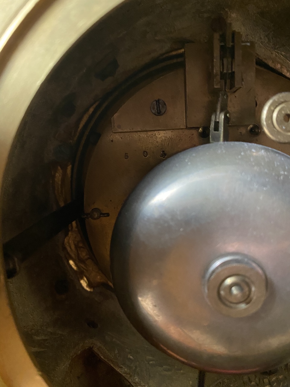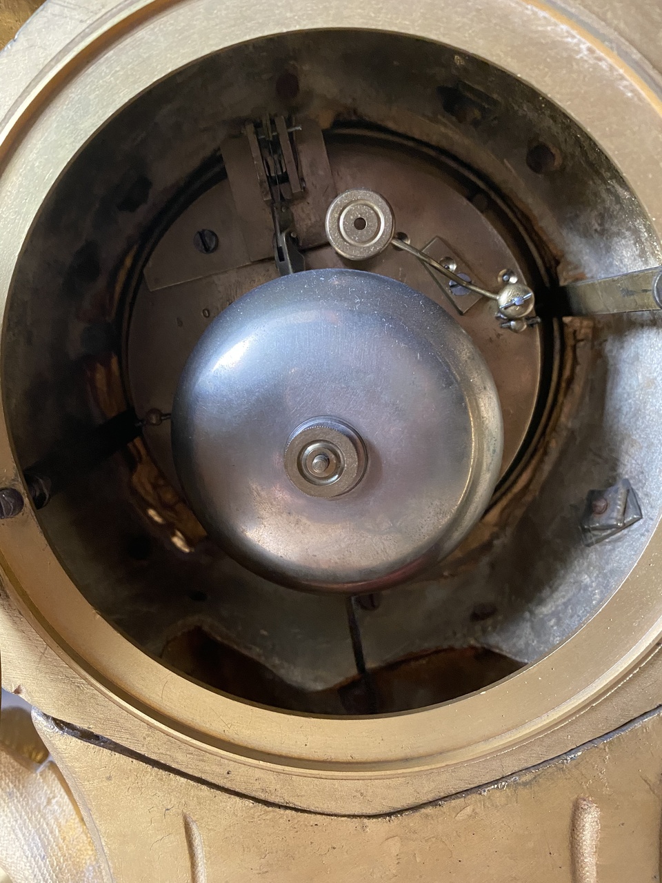 Хорошие часы от известного парижского торгового дома. По времени это, вероятно, 1880-е годы или позже, период эклектики, когда в моду стали входить повторения старых стилей - рококо, барокко, и тп. Проблему с боем легко исправить - у Вас просто молоточек не достает до колокольчика. Нужно либо молоточек чуть подогнуть или колокольчик чуть подтянуть в сторону молоточка.
