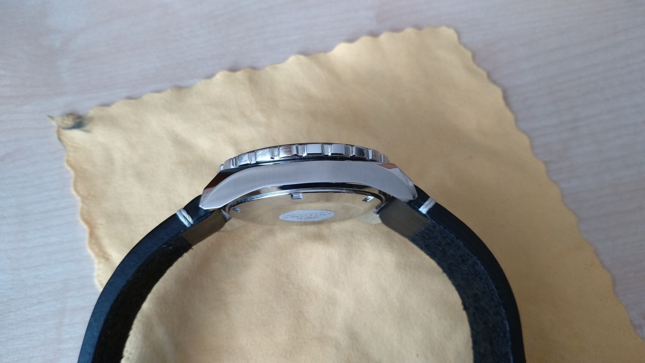 Нося часы больше месяца, понимаешь, что 46мм размер для данного дизайна это правильно. Ведь почти всю площадь занимает циферблат и безель (безель немного выпирает над корпусом).