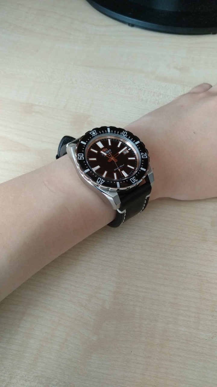 Категорически не понравился расцветка с "карбоновым" циферблатом, ибо DLC покрытие, которое к этим часам не особо подходит + нечитаемые стрелки.