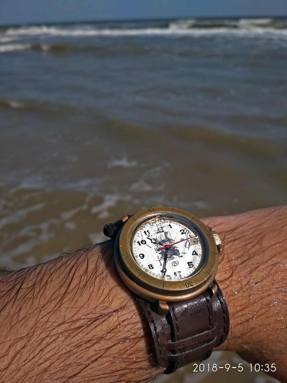 P.S. Кстати, на фото у человека как раз двое часов: амфибия стальная с латунным безелем и полностью латунные командирские. Человек просто ободрал с латуни хромовое покрытие, заменил у командирских циферблат и поменял местами безели.