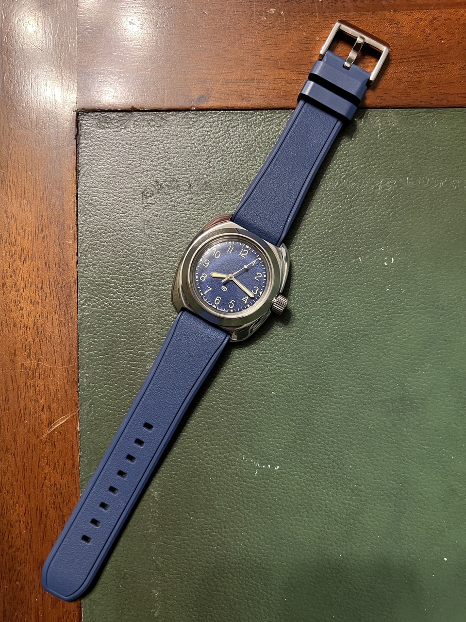 И затолкал все это дело в китайский , очень даже приличный корпус под субмаринер . Нержавейка , с двух сторон вроде бы сапфирчики . Никакой облезлой гальваники и пластикового стекла . Заводной вал встал точно по центру где и положено как родной . Браслет от пятнадцатилетней кетайськой Дайтоны подошел как родной .