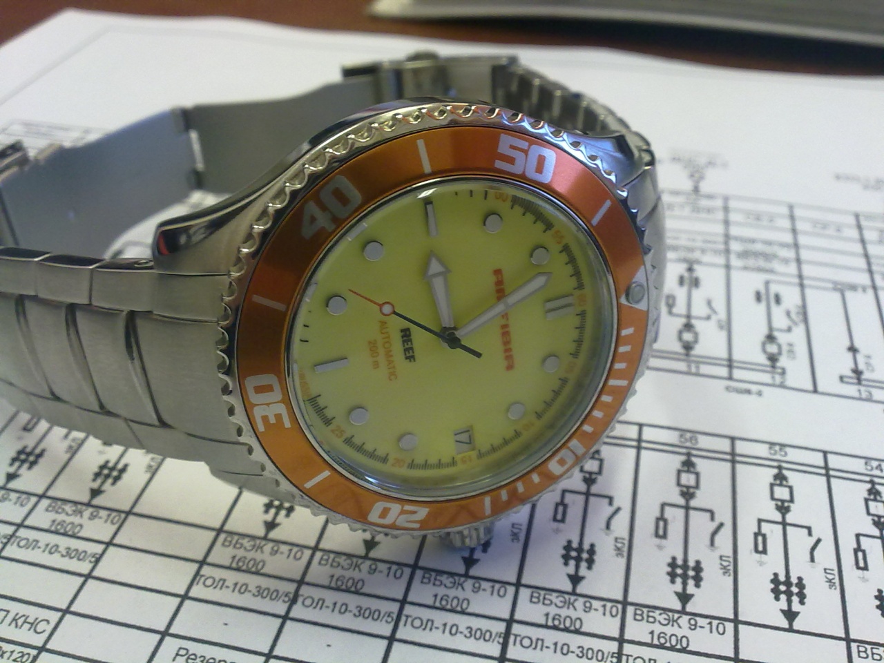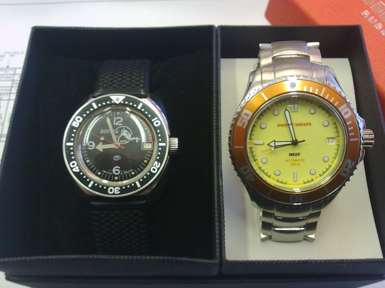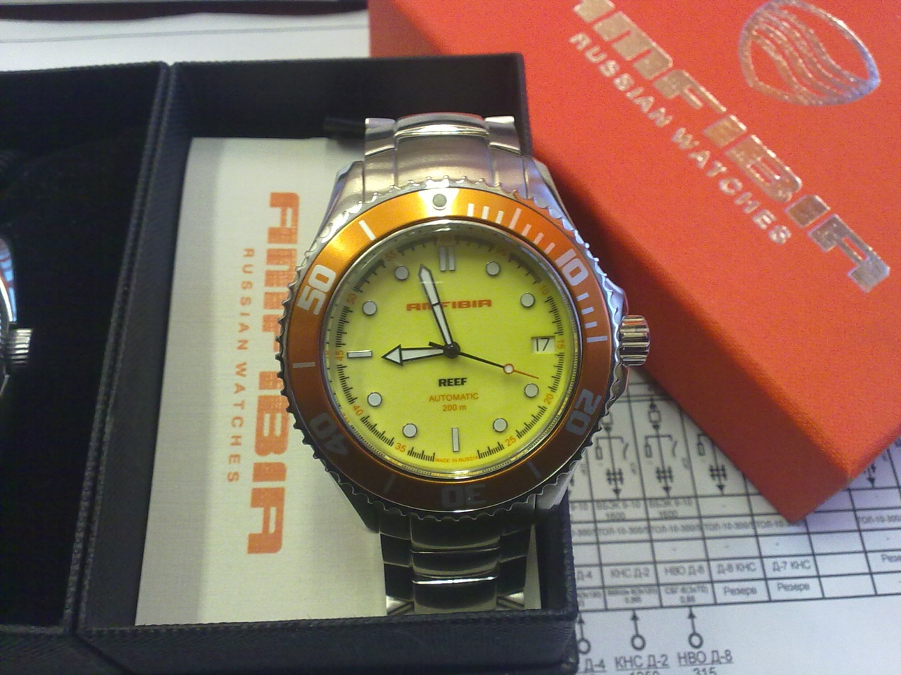 ), но не всё так просто, видите ли, данная модель часов снята с производства (даже боюсь представить человека отвечающего за маркетинг на Чистопольском заводе). Поиск по магазинам города Москвы и ближайшего Подмосковья результатов не дал, везде говорили, что я очнулся поздно и не видать мне Рифа как собственных ушей без зеркала. Но … кто ищет, тот всегда найдёт. Я верил, что на просторах нашей Родины найдётся магазинчик с Амфибией Риф, которые дожидаются именно меня. И я его нашёл. И не просто нашёл, а нашёл ещё и с Рифами разных цветов, т.е. у них есть и чёрный и оранжевые и синие. Остаётся решить задачу с доставкой их в Москву …