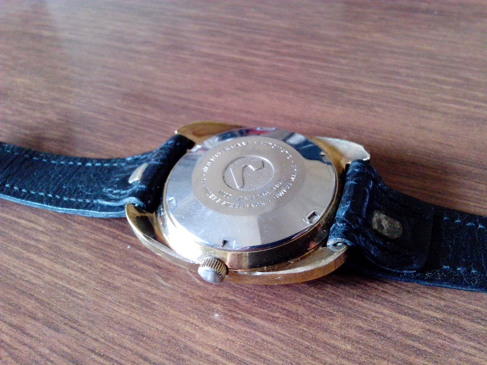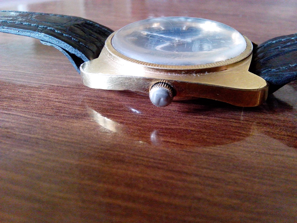 Очень интересный корпус, отличающийся от ранее выложенного мной Searock electronic разсположением ЗГ - если там она скрытая, то здесь на своем привычном месте. Сразу виден недостаток такого расположения ЗГ - она безбожно обтерта, причем, не только позолота, но и эмблема (хотя и видно, что она есть и ЗГ оригинальная).