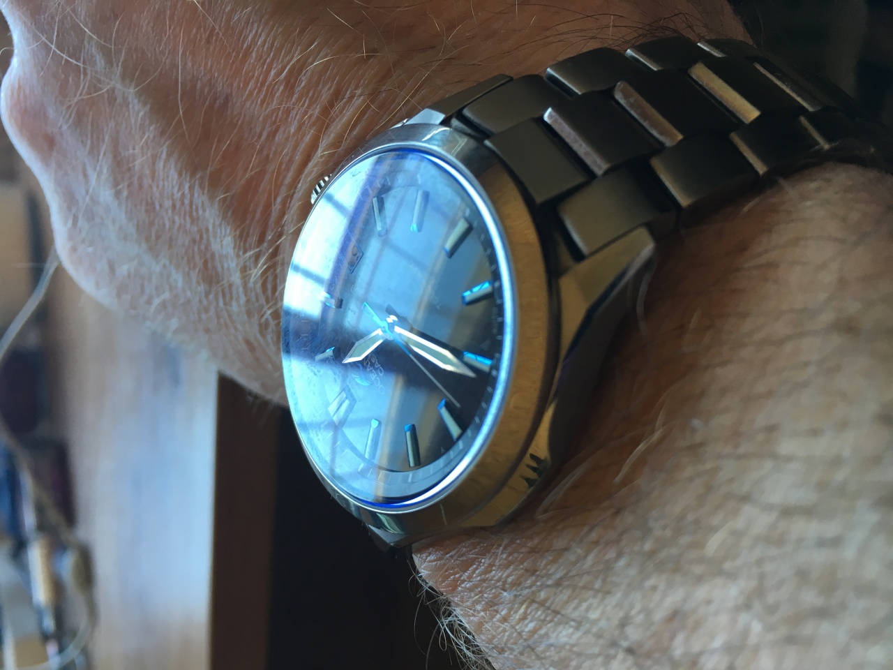 По факту часы определенно понравились. Отлично сидят на руке, стандартная длина браслета мне идеально подходят, доп звенья так и остались в упаковке. Часы сзади плоские, что дает удобную посадку на руке. Мой первый кварц, но ход секундной стрелки после механики тоже нравится, четко попадает в метки. И всегда показывают точное время, воспринимается как "тул вотч", хотя брал скорее под рубашки.