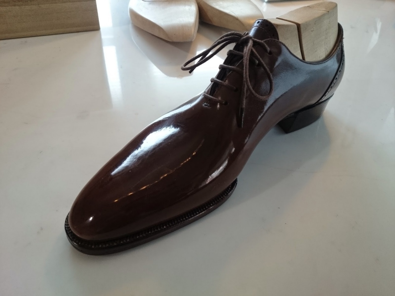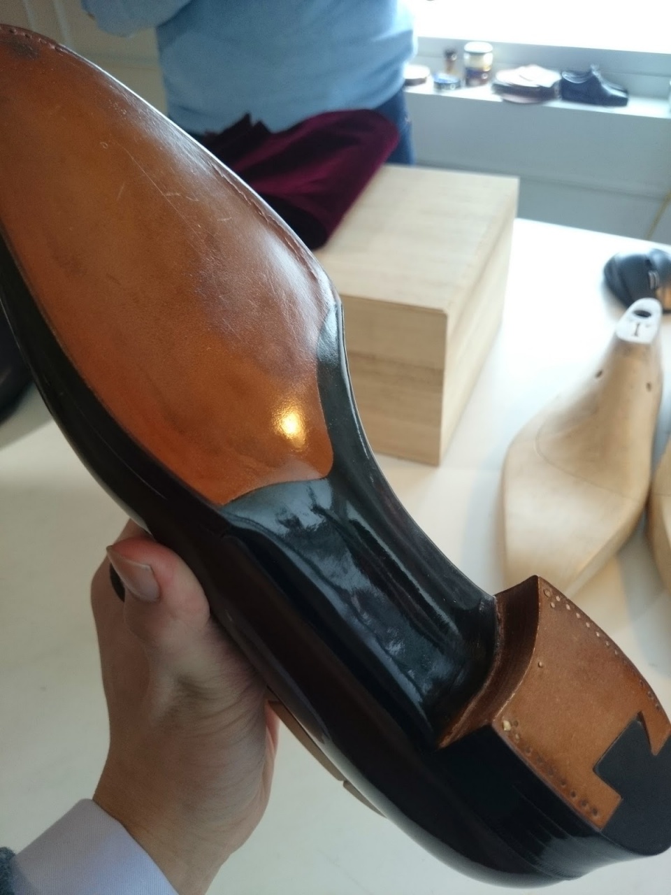 Говоря об этом, два процесса: талия со скрипкой на спине и скошенная талия всегда назывались «сделанным на заказ патентом». Причина очень проста. Это очень трудно сделать. Это не делают обычные люди. Сапожникам с талией Fiddle-back или Beveled в Великобритании не больше 20 лет. Тем не менее, в настоящее время на рынке обуви есть куча вещей, известных как талия со спинкой, на самом деле, все еще необходимо упомянуть Gaziano & Girling и John Lobb Paris.