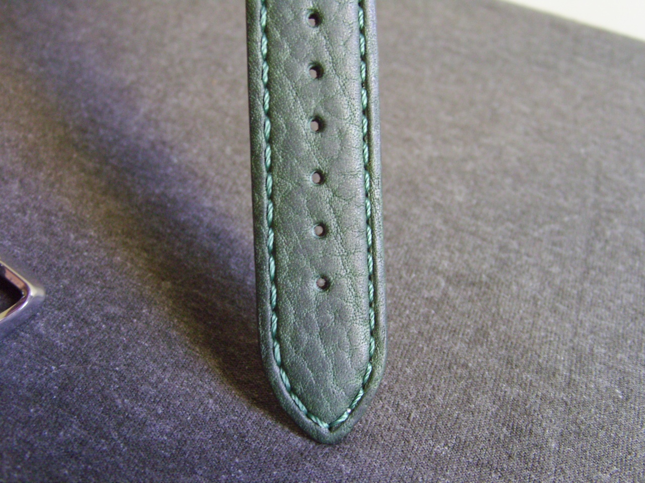 Не скрою, когда просматривал все страницы, посвященные предмету нашего общего обожания и поклонения, надеялся найти альтернативный коричневому ремень, который бы мог составить хоть какую-то конкуренцию априорно коричнево-зеленому сочетанию. Не могу сказать, что вариантов было очень много, поэтому пришлось напрячь остатки воображения, совершить этакий brainstorm, дабы представить, как может выглядеть то, что мне понравится, после чего, продолжая нещадно потеть мозгами, начал просматривать многочисленные предложения кожевенных тюнингистов и продавцов. На одном очень известном и популярном сайте начали попадаться интересные варианты, снаряды падали все ближе, пока не обнаружилось несколько вариантов и, после вдумчивого, хотя и во многом умозрительного выбирания, осталось два (зеленых) - блестяяяяшшшая змеиная красота (все же отвергнутая из-за чрезмерной блестяшшшести, инда в глазах рябило - но зеленая, пакость!) и тот вариант, на котором решил остановиться. Матовая кожа, с тиснением, прострочена зеленой нитью, СПОКОЙНЫЙ зеленый цвет, кмк, вполне сочетающийся с циферблатом Альпа и дополняющий его, как и наоборот. Померив его с родной баклей, решил прикинуть заказанную там же бабочку (матовую - прекрасно подошла к матовым частям часов, да и царапки меньше видны), после чего, удовлетворенный, устало расслабился.