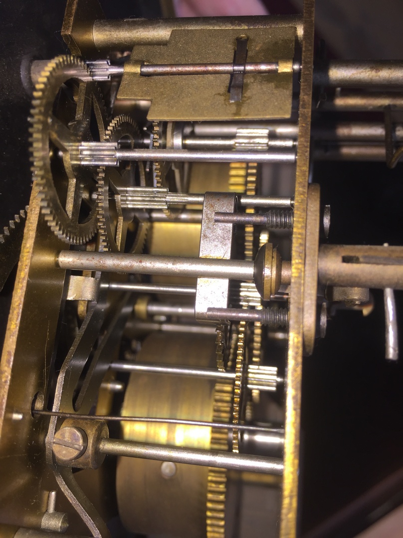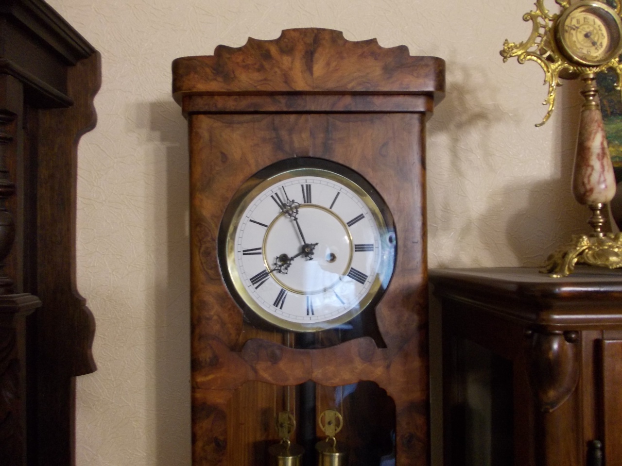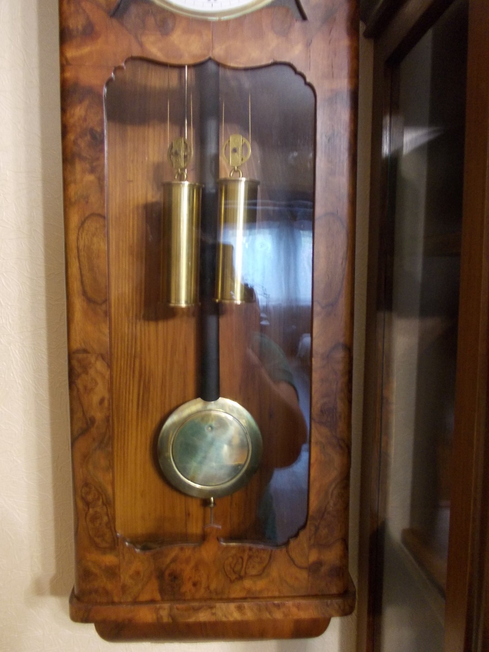 Сам такой размер циферблата, ширина корпуса, метровый маятник - все характерно именно напольным часам русского производства. У стенных часов такого плана циферблат был 26-28 см.