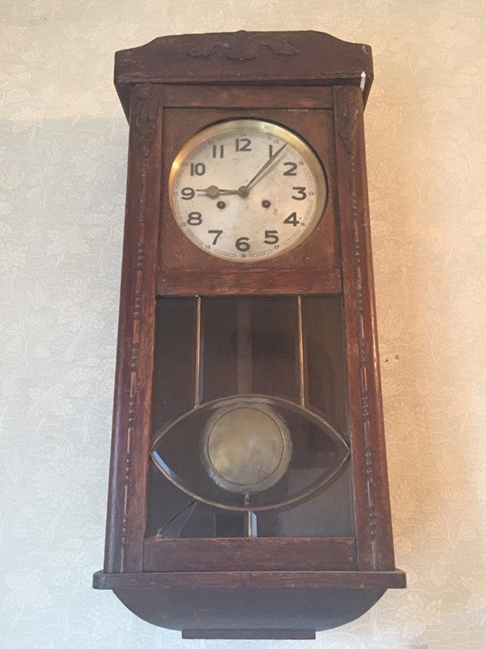 Спасибо, из бумаг на самом деле многое становится ясным. Это изначально были, как и указал тов. Д. Мруг, напольные часы. Футляр или "ящик" был, вероятно, с потерями, разбит, возможно не было уже инкрустаций. Реставратор за 900 р (немалые деньги!) хорошо перешпонировал его орехом в стилистике того времени. Того же периода и фацетное стекло.