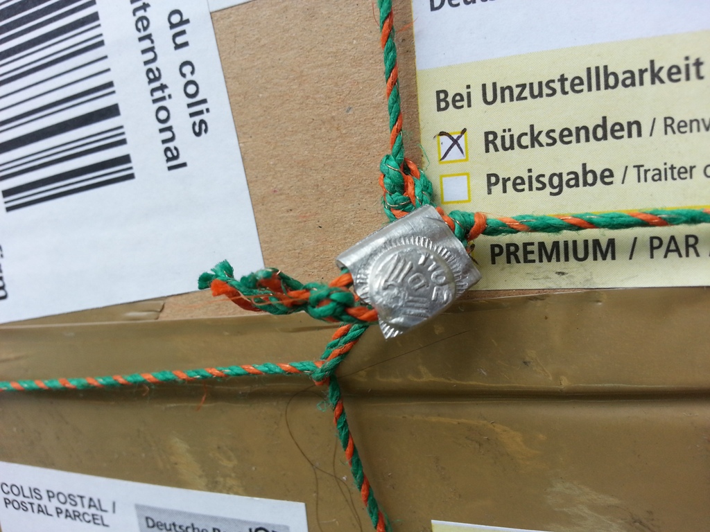 Пока вертел коробку перед вскрытием, обратил внимание на красно-зеленый шнур которым она была перевязана. Целостность шнура и наличие пломбы обнадеживало...