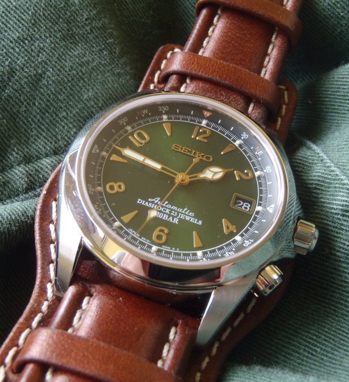 В том-то и дело...Поясню. Альпинст,каким-то непонятным образом совмещает в себе винтажность,спорт и элегантность(на крокодиле,так вообще).И каждый может под себя сместить акцент в ту или иную сторону,подобрав соответствующий ремешок(или выбрав универсальный вариант- браслет).Лично для себя, смещал бы в сторону спорта и винтажа,и этот ремень,как никакой другой способен это сделать.Особенно последний...С неравномерной структурой окраски, подстать переливающемуся циферблату.Ну как-то так).