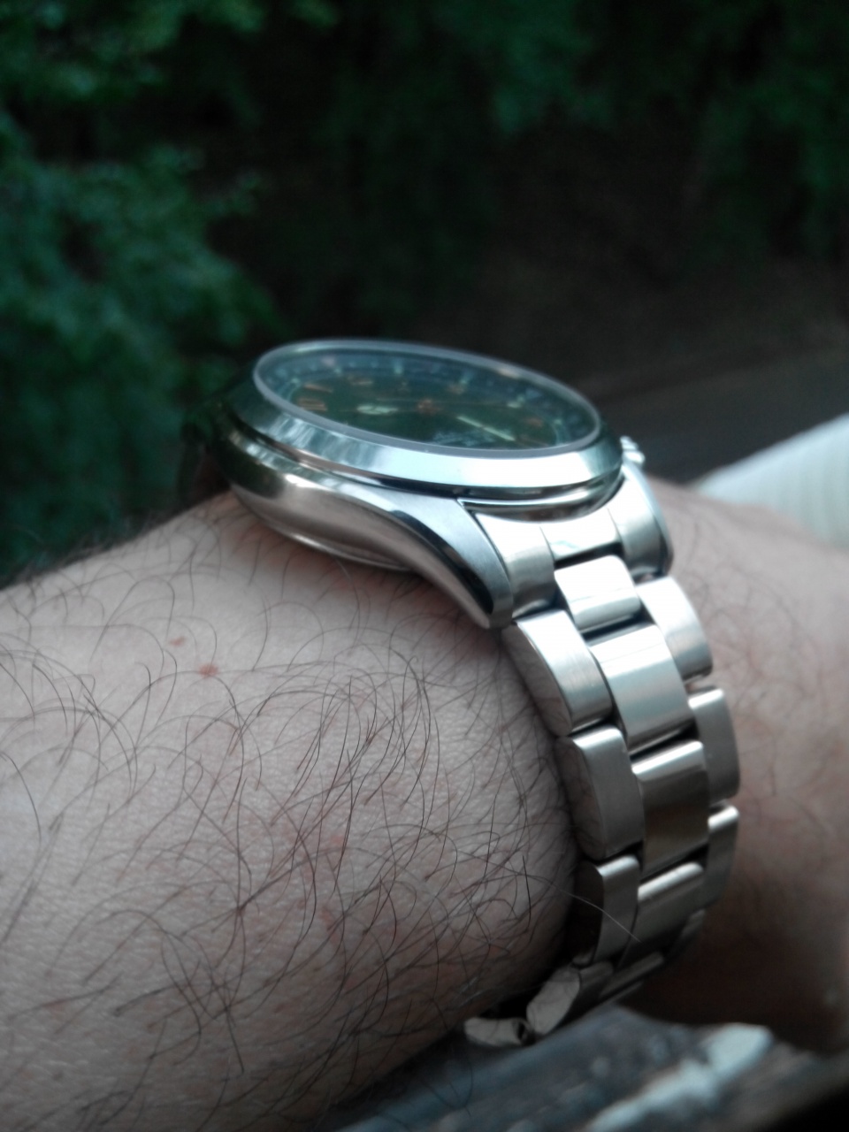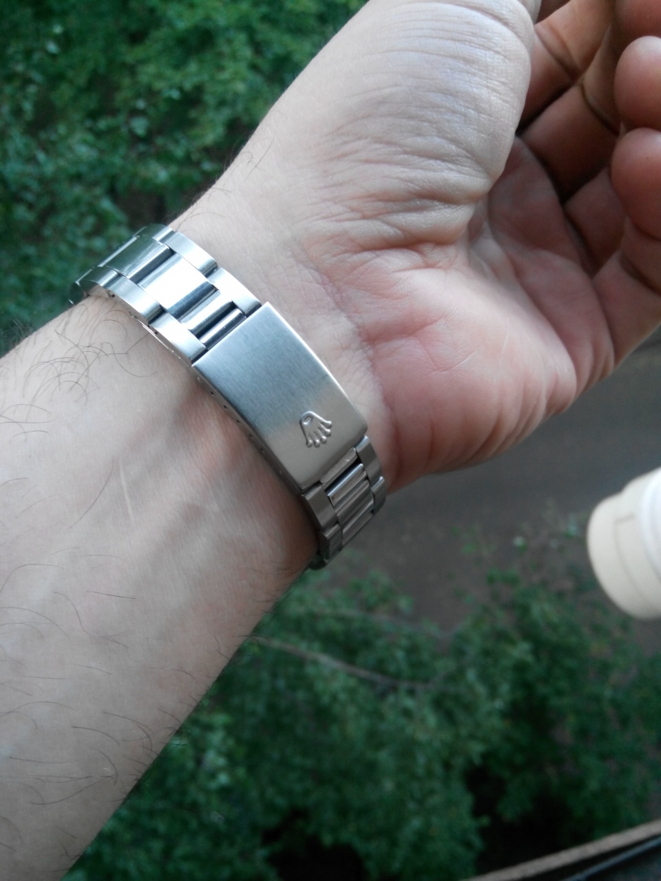 Другой браслет, кЕтайский Роллекс в отличие от Инвикты сильнее сужается и менее массивный, часы смотрятся крупнее. Прилегание к корпусу часов не по идеальной линии (видно на фото), но кажется сойдет.