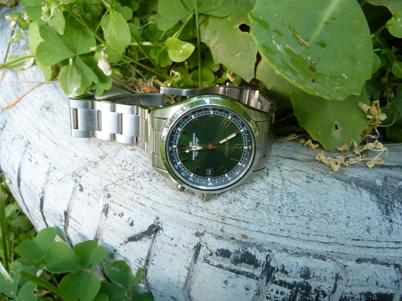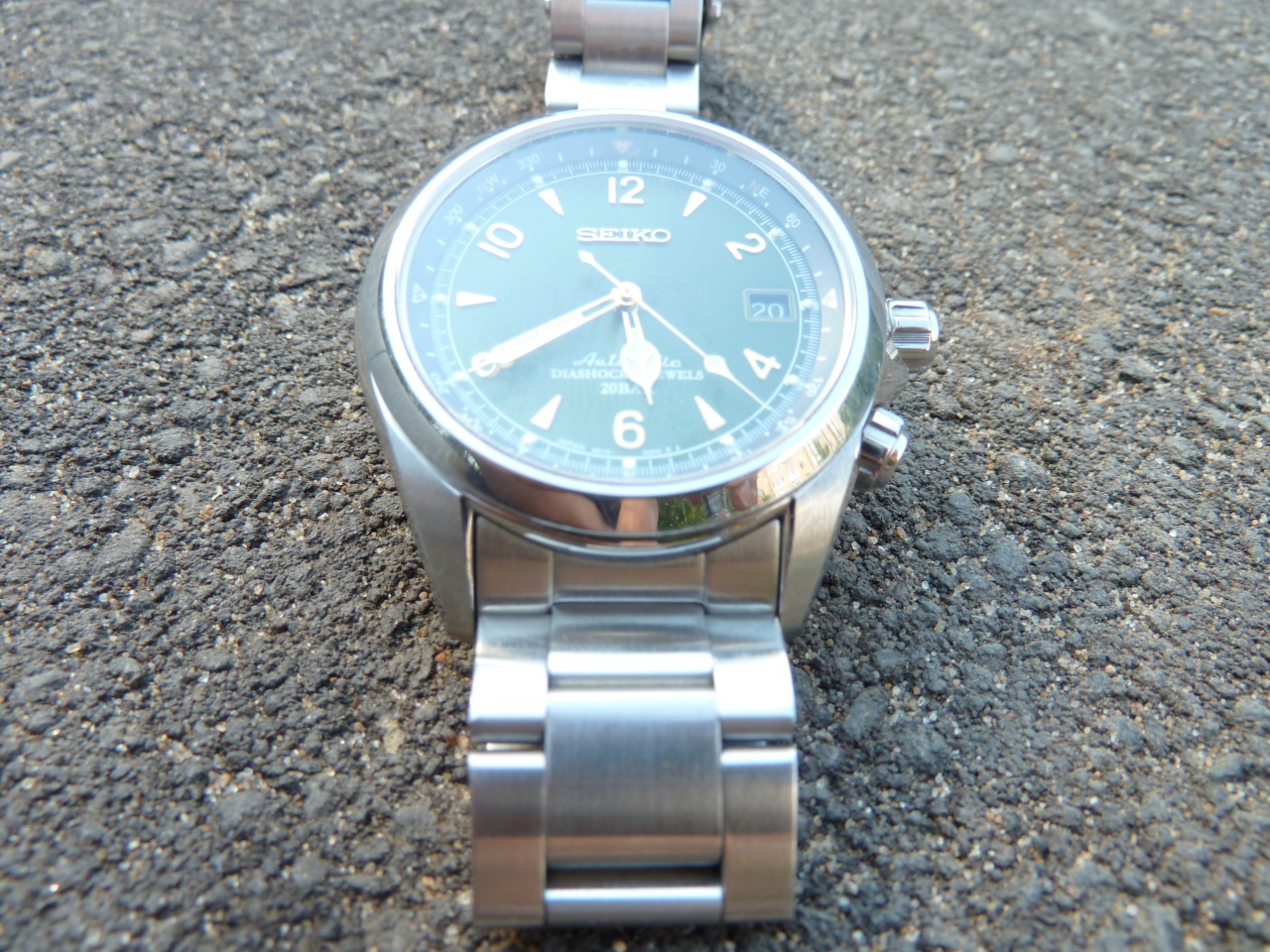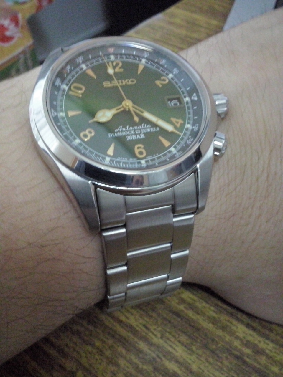 Да, кстати, пора возвращаться к эстетике-родной браслет… Пока гром не грянет-мужик не перекрестится. После долгих мучений с родным ремнем стал искать родной браслет, самое время-на момент поиска их сняли с производства…Хотя предлагали мне, как купил часы, взять по сносной цене (Спасибо To Михаил)…Жадность фраера сгубила и не стал…В общем искал везде и всюду-всюду был отказ, пока мы не решили скинуться вдвоем с одним Форумчанином (Спасибо To ТТМ) на Seiko Sarg001 –мне браслет, ему часы…Но…не срослось по семейным обстоятельствам, потом забегался, но ремень напомнил о себе неудобством, жарой, да еще и трескаться стал изнутри…В общем вернулся я к вопросу о родном брасе и один человек на Форуме мне с ним помог (Спасибо To Maksimm), так мой Альп, наконец, обзавелся родным браслетом и по моему мнению, стал выглядеть и лучше, и удобней и … дороже…