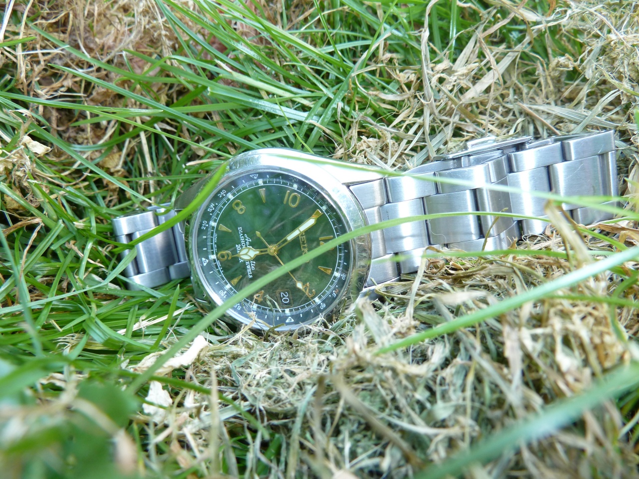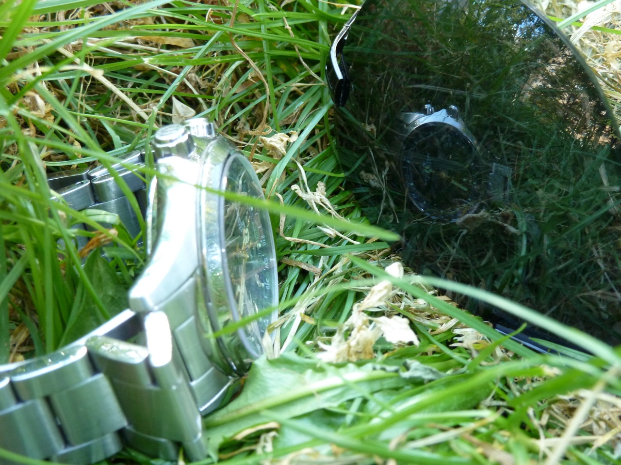 Считываемость времени отменная и днем и ночью, единственное, слегка мелковато окошко даты, но это мелочные придирки. Носил весь год не щадя и в пир, и в мир, и в добрые люди. Под костюм, джинсы и свитер, футболку, трусы и везде он все-таки обращает на себя внимание, прежде всего, цветом цифера…Люм меня устраивает, после солнца так вообще в темноте видно все хорошо. Царапки вследствие естественного и неестественного внешнего воздействия есть, металл все-таки достаточно мягкий, не знаю, как у других производителей, безель, корпус и родной браслет в царапках, стекло (ттт)-держится.