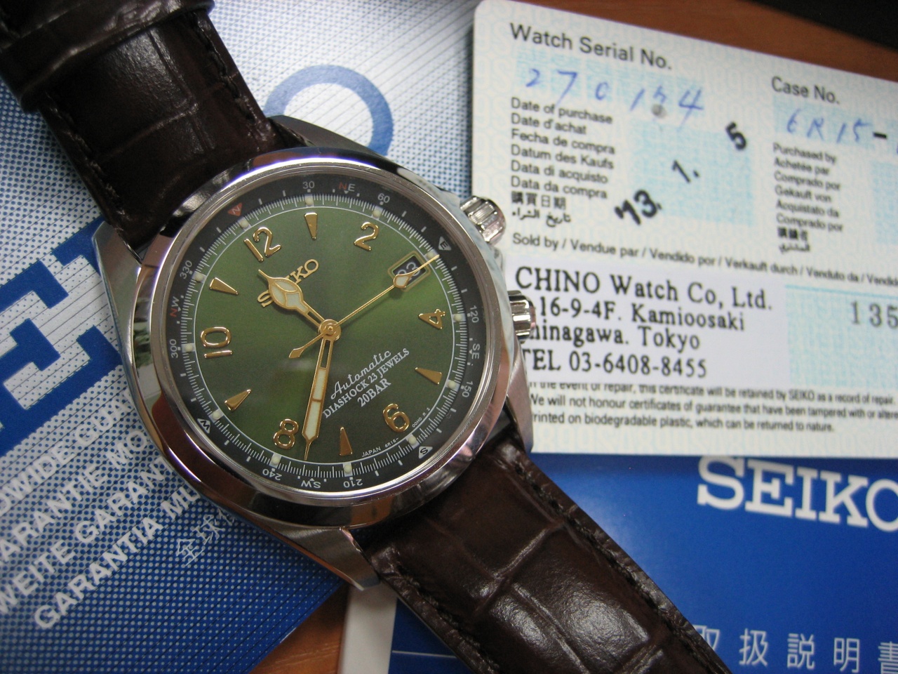 Вчера получил посылочку от Чино со своими SARB 017 Alpinist. ЕМС России побило все рекорды по “скорости” доставки -17 дней, я раньше из Японии за 6 получал. Сразу как открыл коробочку сказал - УХ! Альпинисты 017 просто супер! Каждую копеечку своей цены отрабатывают! Все детали экстерьера часов – к месту и со вкусом! Тикают приятно. Вооружился увеличительным стеклом (в простонародье - лупой), на предмет исследования всяких пылинок и ворсинок - но ничего не обнаружил(. Ремешок, конечно не суперский (жестковат), но за день обжался по руке – очень удобно. Я уже говорил – завораживают взгляд! Со своей легкой руки советую всем форумчанам – не сомневайтесь, покупайте и носите с удовольствием. Есть разные часы, есть швейцарские, есть японские, есть другие, есть которые нравятся. Купите себе часы которые нравятся, а Другие (для работы, для отдыха и т.д.) всегда успеете! Альпинисты 017 - первые претенденты на часы для "Для Себя". Я редко пишу такие теплые слова о вещах, но эти часы того стоят! Замерять погрешность хода часов в ближайшее время не собираюсь - пускай приработаются, если уж если пылинок нету, то и точность должна соответствовать) Номер на часах 270174, а то плохо видно. В теме «Альпинист 2» особое спасибо за оригинальные высказывания и въедливые мысли следующим форумчанам : deathinjune, ARTEM KUZMIN , Freelancer , buran3001. И еще раз - Seiko sarb017- правильные часы и не впустую потраченные деньги.