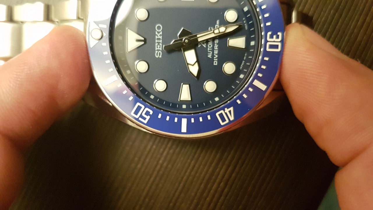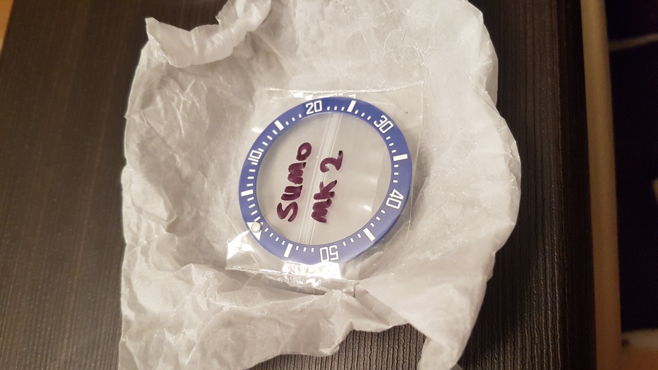На тему Безеля, брал синий, пришел аккуратно запечатанный, в отдельном пластиковом боксе, в нем мягкая бумага, внутри сам в упаковке, фото с телефона на коленках, всей цветопередачи не отразит,((( светлее стандартного установленного, обидно что метки не светятся они без люма, в целом понравился, вроде риски совпадают, если просто приложить и на глаз, когда сядет думаю утопится и будет норм. фото ниже