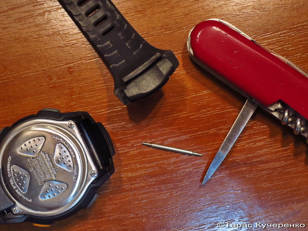 Хорошо, когда есть шпилькосъемник, с ним эта процедура была бы проще. Но ведь мы не ищем легких путей и используем шило швейцарского ножа Wenger