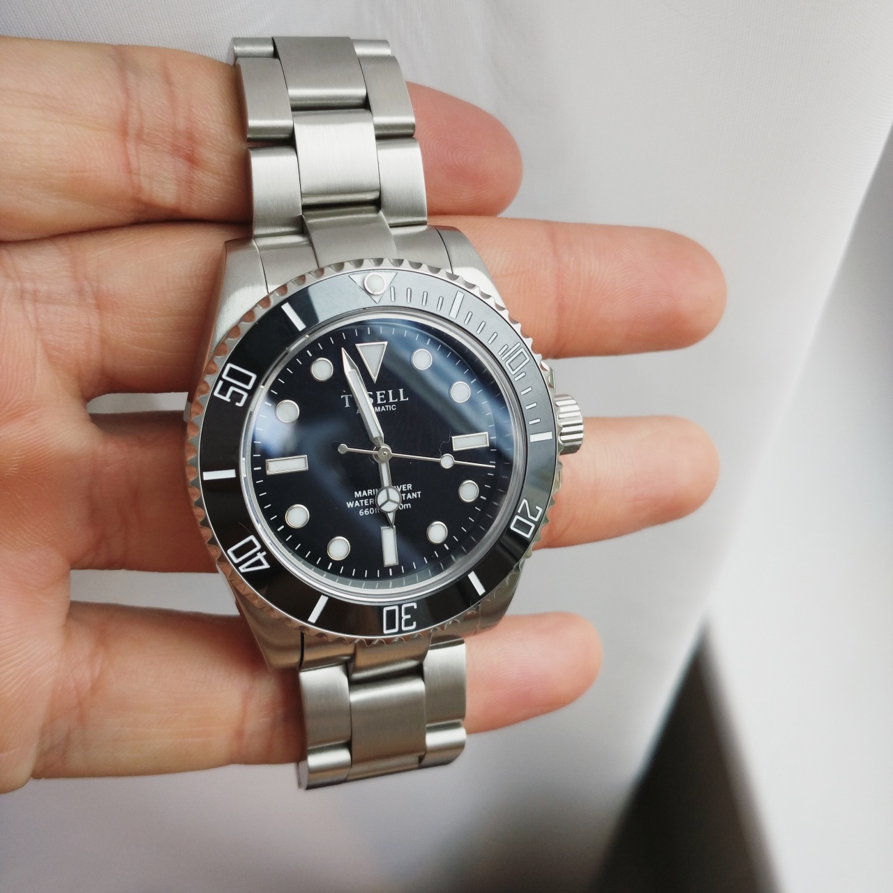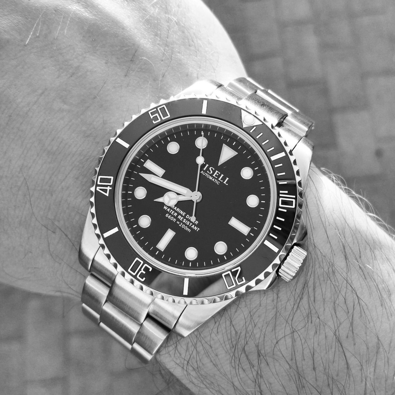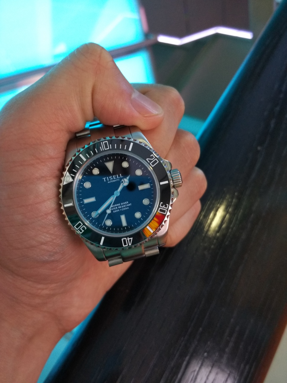 ))) Далее, обнаружил легкую коцку на одном из звеньев, но это ерунда, все равно снял 2 шт, а то что с затертостью, заменил, но опять же , эту терку и не видно даже толком ))) Люм, один из форумчан, отдавал свой экземпляр Стасу на релюм, я полагал, что люм так себе, тем более сам для своих проектов подбирал люм, и нашел просто шикарный стафф, огонь ))) Думал буду менять... Но засветив часы очень удивился, а люм реально достойный, может они в этот раз что то поменяли у себя там, но у меня даже желания не возникло туда лезть, он светит, и очень не дурно. К слову, люм как и у оригинала 114060, голубенький , из минуса, точка на безеле больше в зелень уходит. Но не напрягает. Безель качества высокого, все ровно, без зазоров, гравировка к керамике четкая! Немного смутила зг, не в плотную к корпусу закручивается, но присмотрелся, на оригинале так же ))) А вот накатку можно было сделать чуть лучше, это наверное самое большое но (из двух 1. точка люма на безеле свечением чуть более в зелень, и 2. накатка зг, но она не столь ужасна, и не раздражает, цепка, хорошая, но хочется четче). Стрелки шикарные, они с 2-мя гранями под углами, играют, бликуют, очень дорого, цифер с накладными метками без изъянов, при дневном свете Часы шикарны! Стекло сапфир, 200wr, мех miyota90s5 и за 220$ c доставкой, считаю вполне адекватной ценой ))) В общем я часами доволен на все 100% . Ожидания более чем оправданы, с руки не слазят, взгляды приковывают, носить не стыдно, даже наоборот хочется и хочется . Так что если кто сомневается, отбросьте все сомнения, не прогадаете, часы достойные внимания ))) ну и немного фото )))