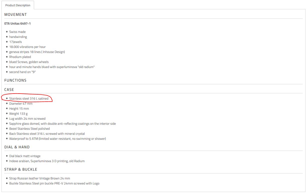 Ну ведь полированный же корпус! А на сайте написано "Stainless steel 316 L satined".