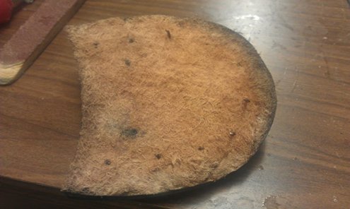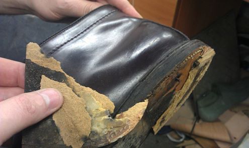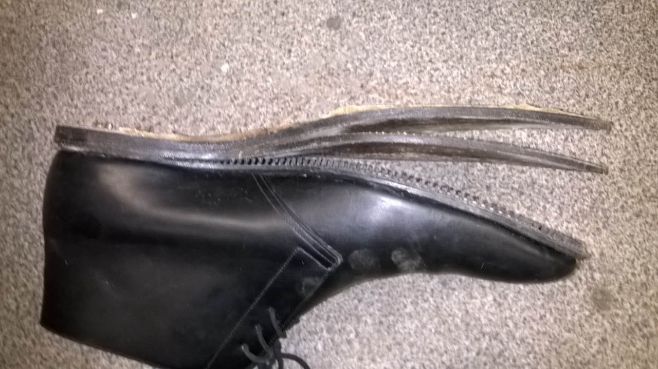 Картинка показанная по каблуку, подтверждает, что материал флика был прочным и плотным, так что его пришлось расковыривать на части. И то не отошел от основной подошвы!