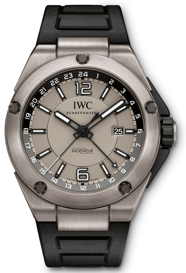 Несомненно, обращают на себя внимание новые элементы дизайна семейства Ingenieur. Место характерных технологических отверстий на ободке теперь занимают пять винтов, что идеально соответствует спортивному духу часов. Винты соединяют стекло циферблата с корпусом, состоящим из титана как в Ingenieur Double Chronograph Titanium (Ref. IW386501, IW386503), так и в Ingenieur Dual Time Titanium (Ref. IW326403). Данный материал компания IWC внедрила в свое производство в 80-х годах ХХ века, что стало открытием для часовой индустрии. Неудивительно, ведь уникальные химические и физические свойства титана говорят сами за себя. Он в два раза легче, чем нержавеющая сталь, устойчив к коррозии, обладает надежной защитой от магнитных полей и не раздражает кожу. Именно поэтому даже кнопки обеих моделей, заводную головку и ее защиту разработчики выполнили из титана, покрыв его слоем каучука.