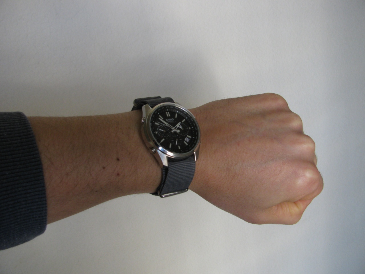 Не сложилось у меня в жизни с браслетами, поэтому первым делом поиграл с ремешками (в наличии были несколько нато и черная кожа). Пока остановился на черной коже, она правда не по размеру (22мм вместо 20), но нравиться больше других вариантов. Фотки прилагаются.