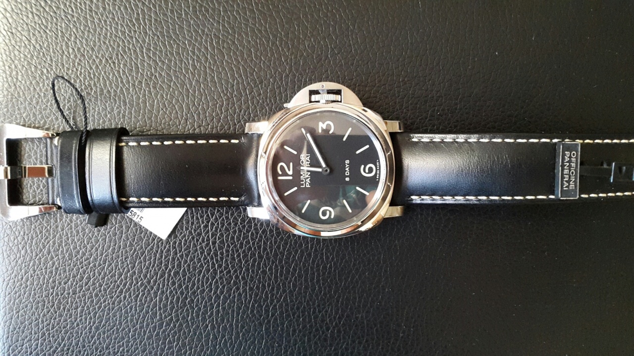 Крепление: Фирменный кожаный ремешок PANERAI с большой пряжкой из стали.