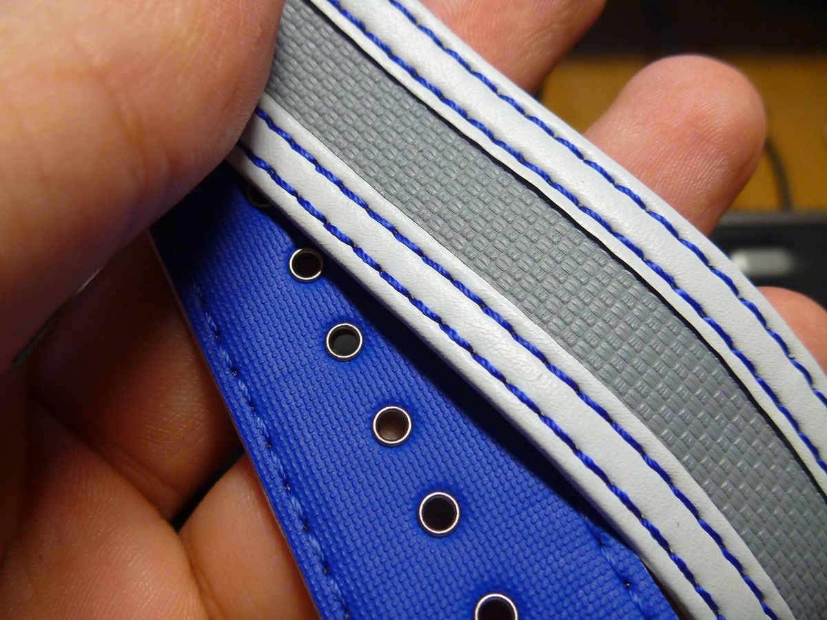 PRW-3000G-7DR - это белый протрек, точнее немного серенький с синими элементами. Фотографий в сети совсем мало, только две протокольные везде, поэтому думал, что у них основной ремешок будет из двух частей, как у остальных. А оно вон как оказалось – ремешок простой и приподнимает часы над рукой, а я 3000 выбирал как раз из-за малой толщины. Придется смириться с данным фактом, т.к. отдельно белых двойных ремешков не бывает, если только на титановый разориться. Ремешок виниловый, многослойный; с металлическими люверсами, достаточно легко пролезает в проушинки.