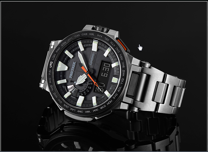 Citizen: EcoZilla Ti, JY8020-52E; Maurice Lacroix PT6058, Casio: Sea-Pathfinder SPF-60, Frogman GF-8230, Frogman GW-200Z, Frogman GW-225C, Frogman GW-200MS, GW-5000, Manaslu PRX-2000T Были: Casio King GXW-56, Seiko Sumo, MTG-S1000D