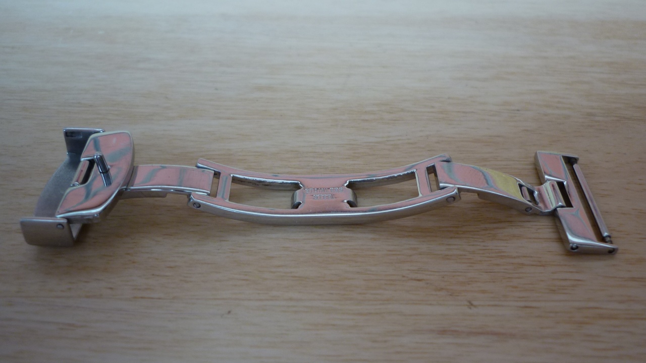 еще одна разновидность такой застежки, которая лично мне нравится больше всего. Потому что, такая конструкция застежки вобрала в себя все плюсы "застежек Брайтлинг" и в тоже время лишена всех обозначенных минусов.