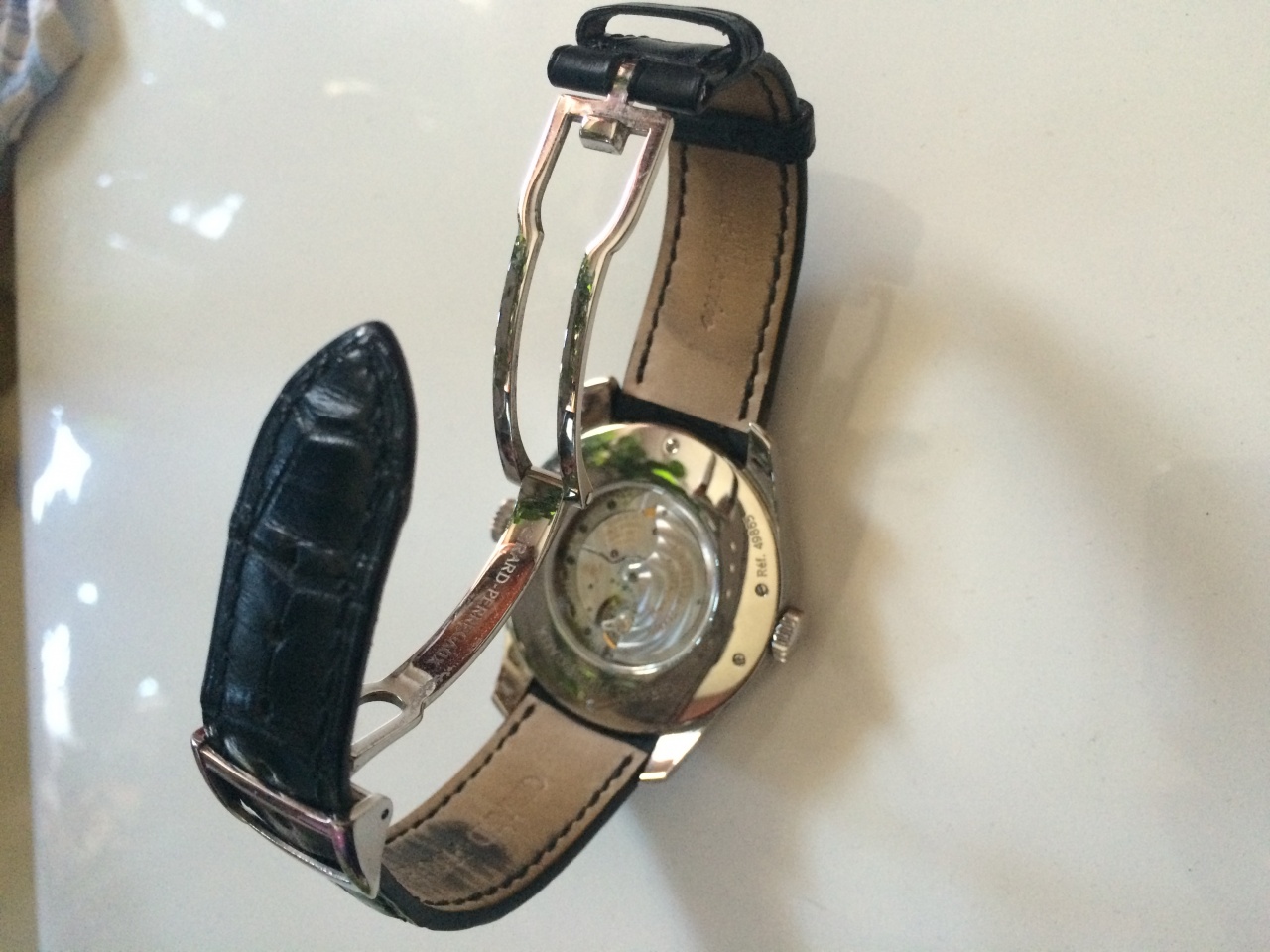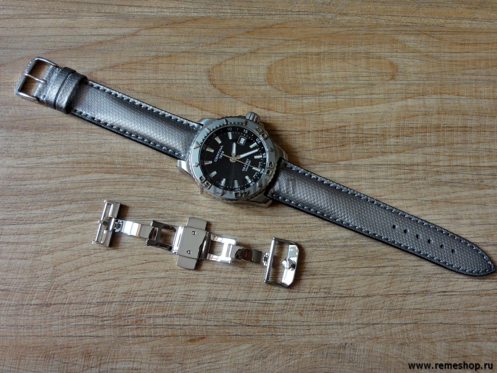 Итак, классическая (родная) застежка Брайтлинг подразумевает использование таких ремешков без перфорации. Поскольку его регулировка и фиксация достигается посредством его изгиба в приемной части застежки.