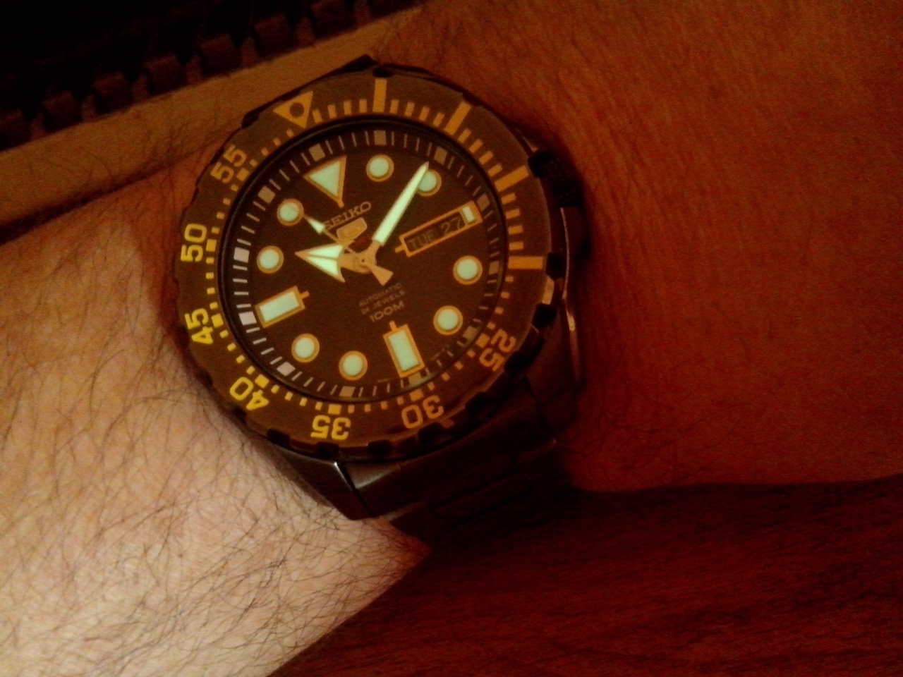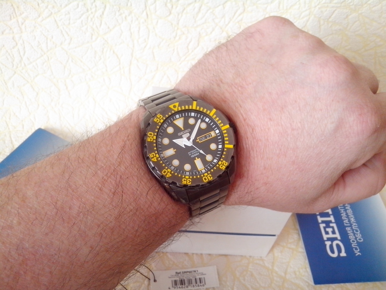 Seiko SRP607K1 - мужские механические часы. Калибр 4R36.Корпус крупного размера (44 мм.) и выполнен из нержавеющей стали с ионным покрытием . Модель SRP607K1 имеет стекло хардлекс, стальной браслет чёрно-коричневого цвета, чёрный циферблат.Люминесцентные стрелки и маркеры. Водоустойчивость: 100 метров. Дополнительные функции и особенности: дата, день недели. Полная заводская комплектация Seiko