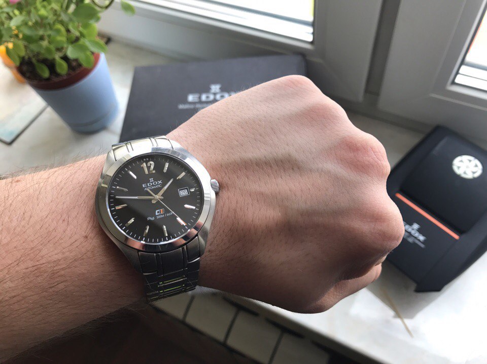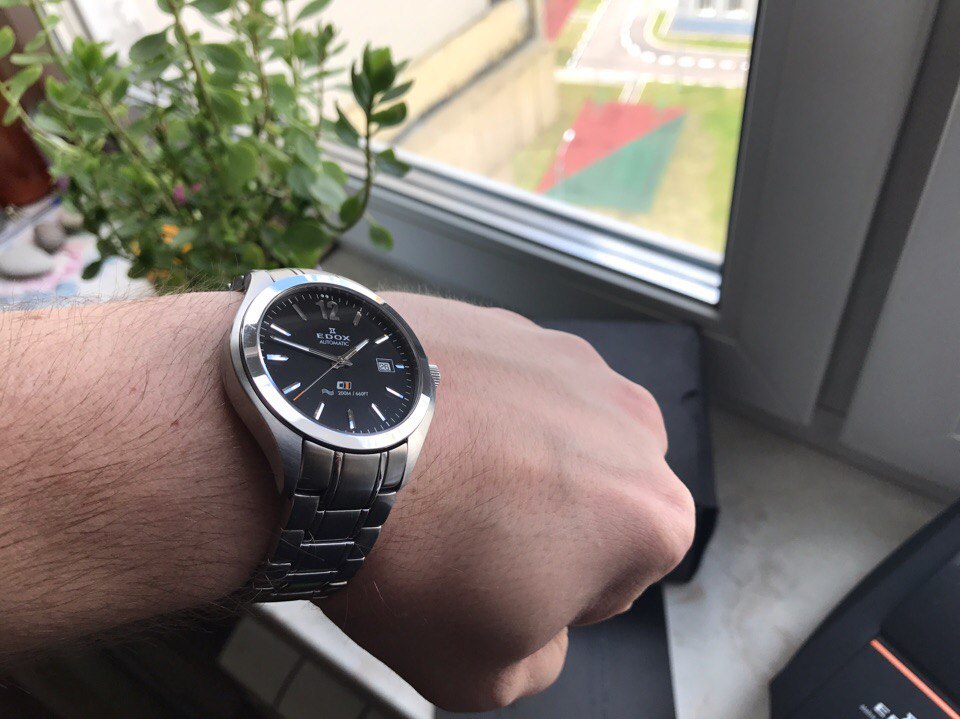 Классный вариант надежной швейцарской механики с высокой водозащитой от именитого бренда за скромные деньги. Отличные часы на каждый день, очень удобно и органично сидят на запястье. По стилистике сочетаются с любым гардеробом, будь то костюм или же шорты с поло. Состояние практически идеал, полнейший комплект.