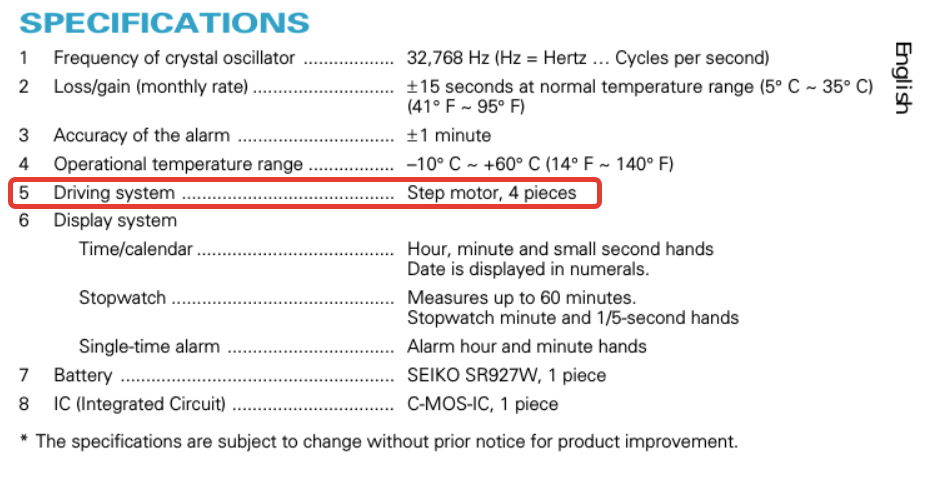 Таким образом работают все механизмы линейки 5Мхх. Только калибр 5М85 имеет GMT, таким образом, следуя логике вещей, второй шаговый двигатель предназначен для GMT. Также следует отметить один момент: калибр 5М85 имеет высоту 4,8 мм. Видимо сейковцы посчитали, что если делать привод GMT от одного двигателя, то колесная система будет более громоздкая, что приведет к увеличению высоты калибра. Видимо установка второго шагового двигателя была более рациональна с точки зрения компоновки механизма и эргономики часов в целом.