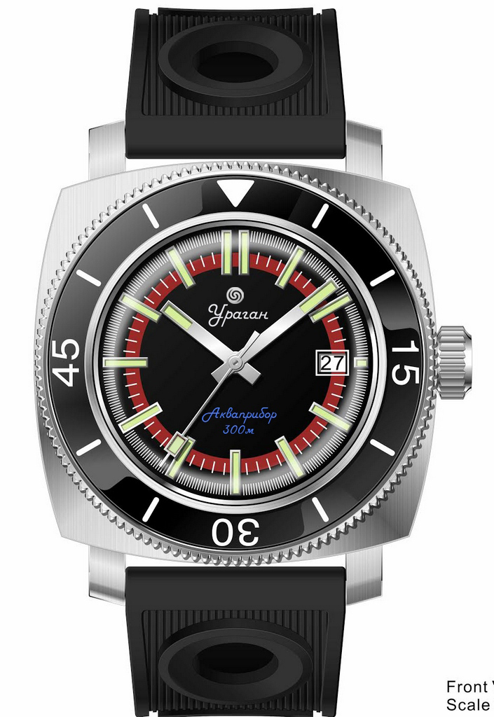 Циферблат: чёрный с цветным радиусным акцентом, часовые метки люминесцентные
