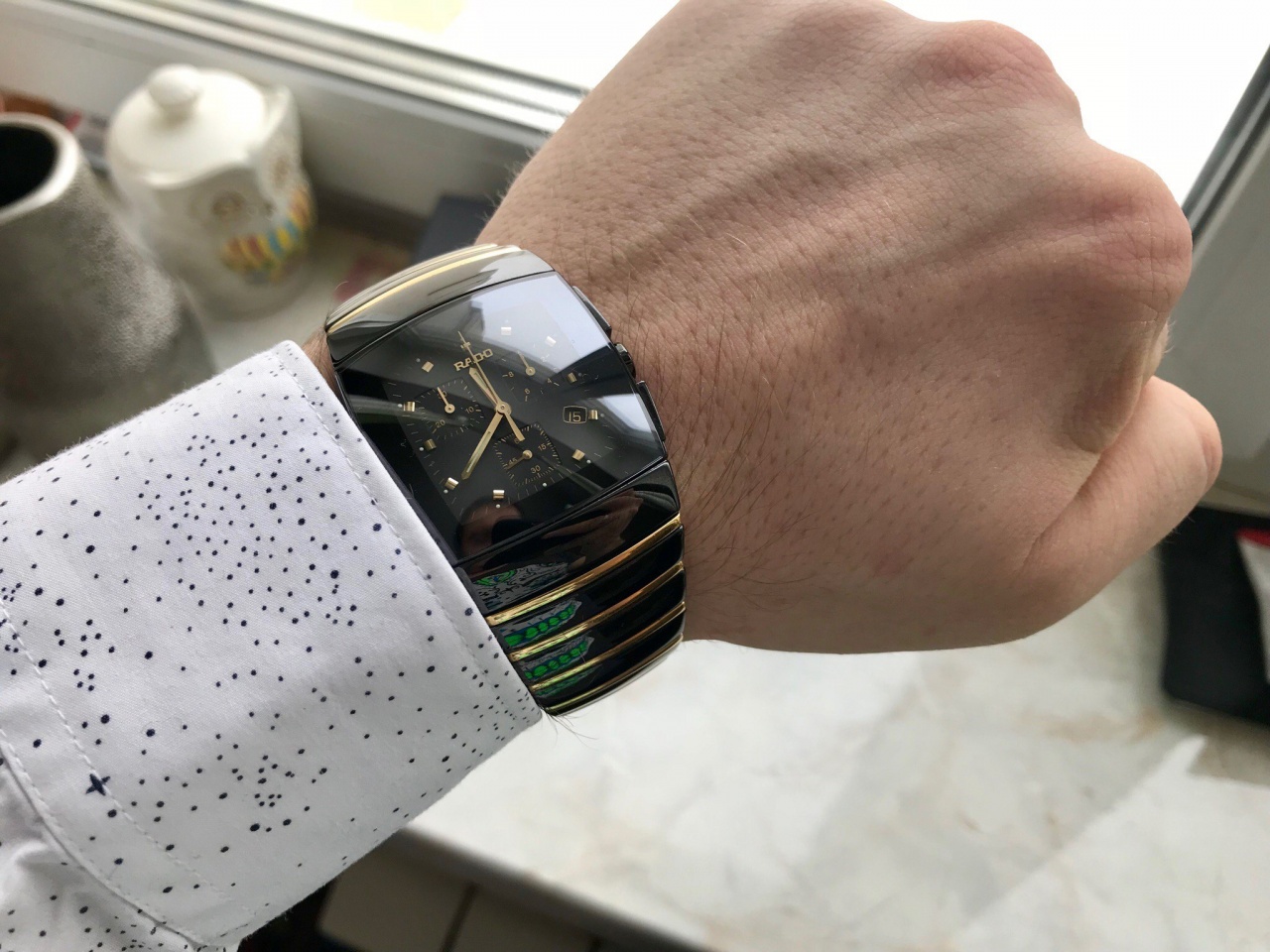 Продам шикарные мужские часы Радо. Знаменитая флагманская модель в лучших традициях всемирно известной швейцарской марки. Корпус и браслет из керамики, вставки из чистого золота 750 пробы. На руке выглядят потрясающе! Несомненно, подчеркнут статус своего владельца. Узнаваемость 100%-я. Станут достойным пополнением любой часовой коллекции, потому что имеют яркий эксклюзивный дизайн, не схожий ни с одной другой маркой.