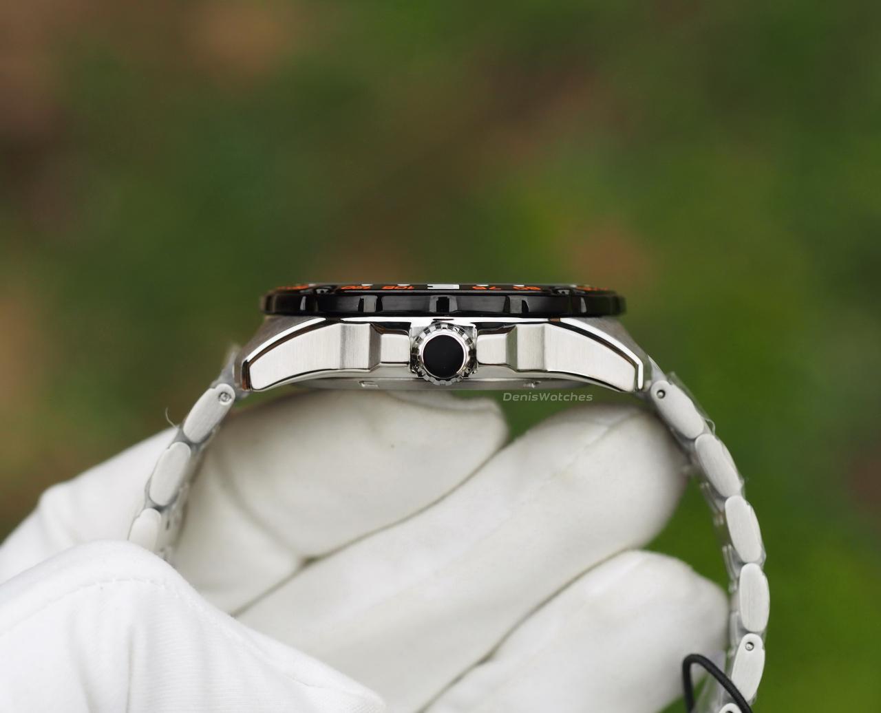 Стальной корпус, сатин + полировка, защитные выступы у заводной головки