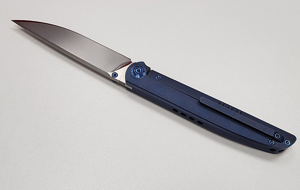 Нож мастерской Чебуркова Кори - лимитка М390, титан анодированный, подшипник в осевом узле..