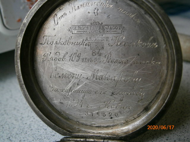 Эта крышка одна из трех крышек швейцарских карманных часов, обилие надписей полностью заменяет паспорт, сопровождающий современное устройство. Паспорт часов выполнен на французском языке.