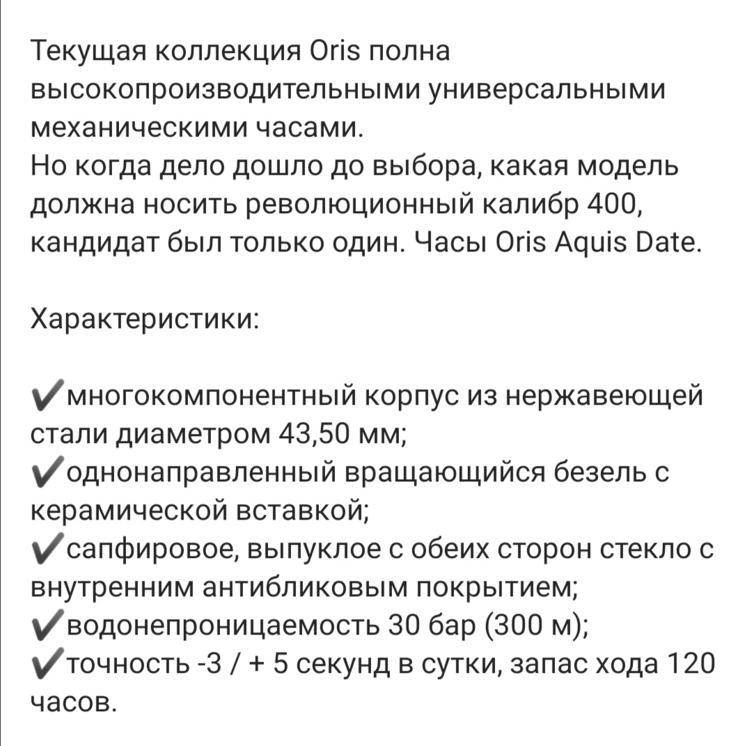 | Oris представил новый мануфактурный калибр "Calibre 400" | arzt | Новости | 36 | 27.01.2021 20:51 |