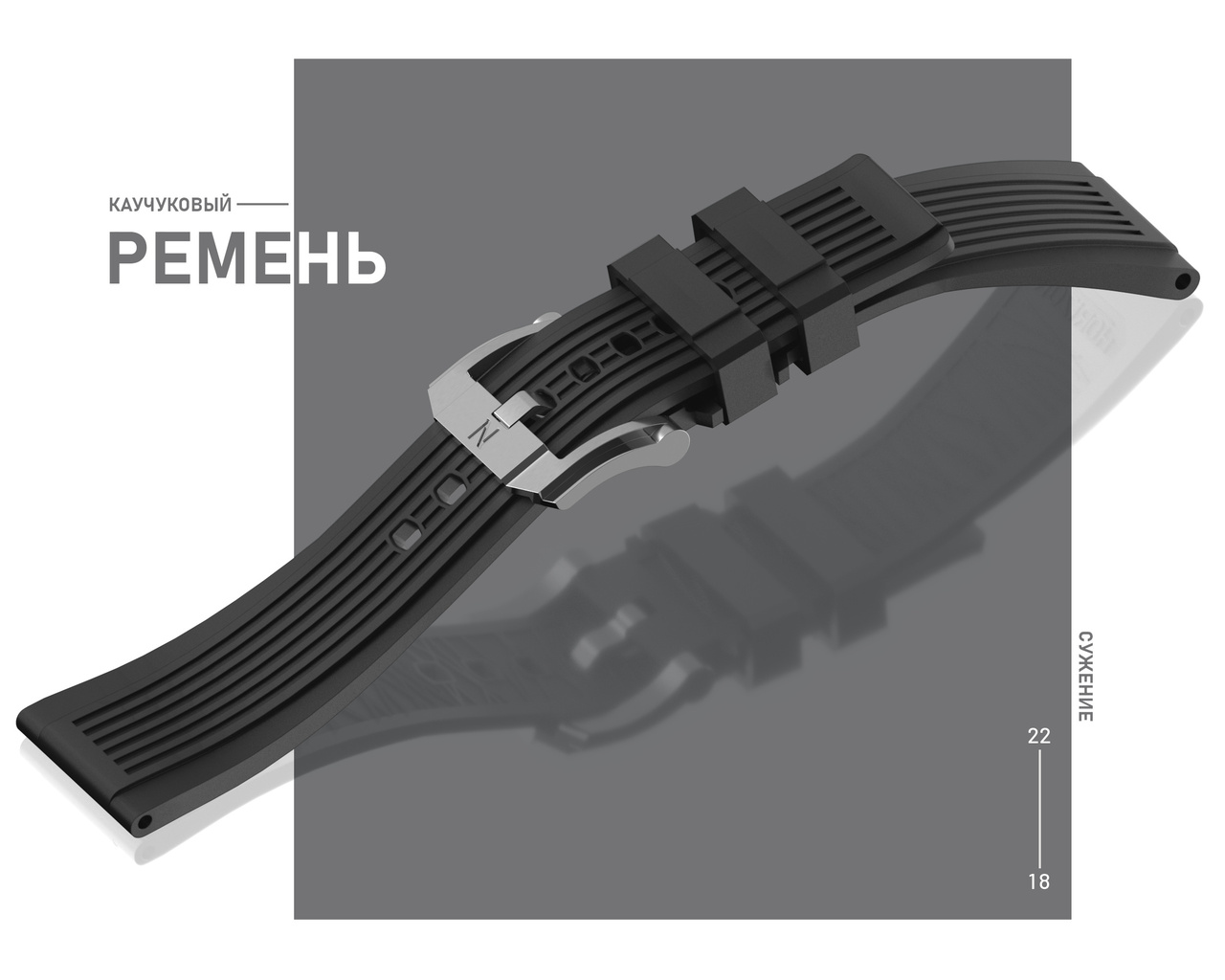 Концепция часов продумана до мелочей. Даже профиль бакли - чётко по размеру ремня. Ремень мне показался тонковатым. Пересадил на Ди-Модел Торнадо. Ширина между ушками - почти 23 мм. При желании можно втиснуть и "тяжёлую артиллерию" на 24 мм, но для моего запястья в 16 см это перебор. А вот гравировка порядкового номера и координат - очень мелкая. Полировка торцов строго противопоказана. Как бы патинирование эти надписи не съело