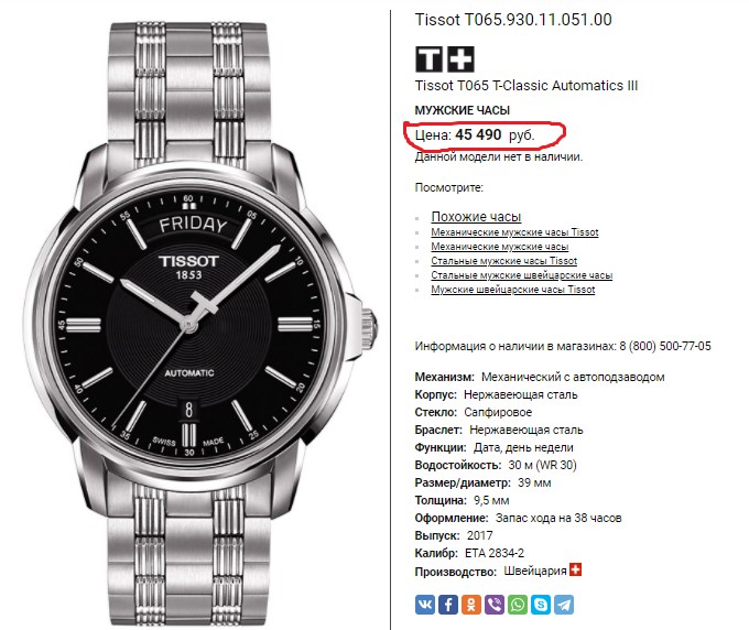 | TISSOT T065.430.16.031.00 (T0654301603100) T-Classic Automatics III | Xenomorph Xenos | Советы по выбору часов | 3 | 18.01.2017 15:32 |